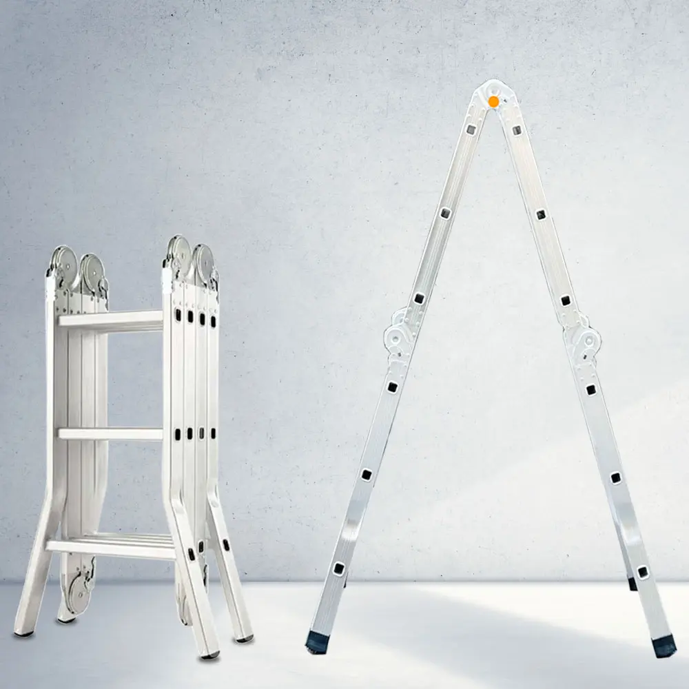 Kiểu dáng: Thang nhôm gấp làm 4 đoạn, sử dụng được nhiều kiểu dáng: chữ A, duỗi thẳng chữ I, chữ M, U, L. Xếp gọn khi không sử dụng.
